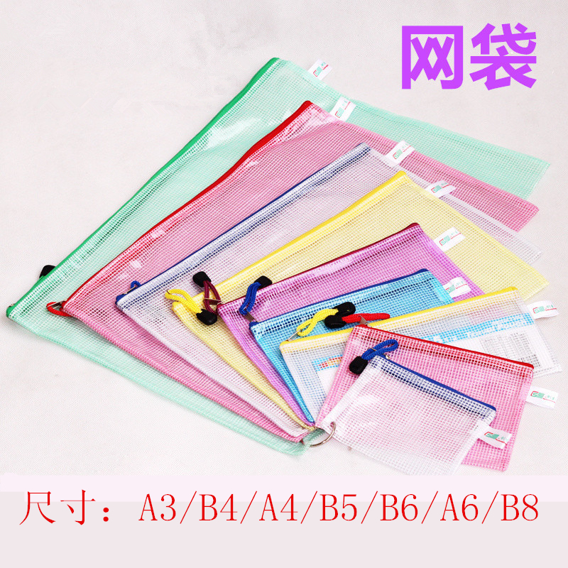 A3 B4 A4 B5 B6 A6 B8 Receipt mesh bag Pull side A4 mesh bag Zipper document bag Information bag