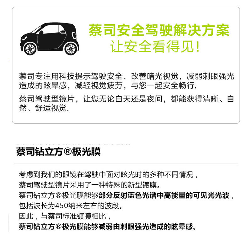 ZEISS driving lenses drill cubic aurora film anti-glare single light Progressive myopia reading resin spectacle lenses