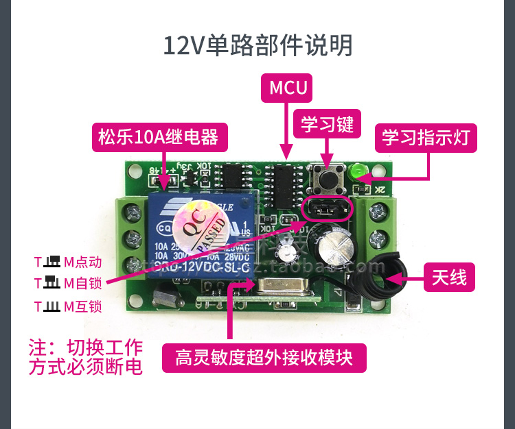 DC24 12V single-way wireless remote control switch 3000 meters high-power wireless remote control lamps and lanterns access control switch