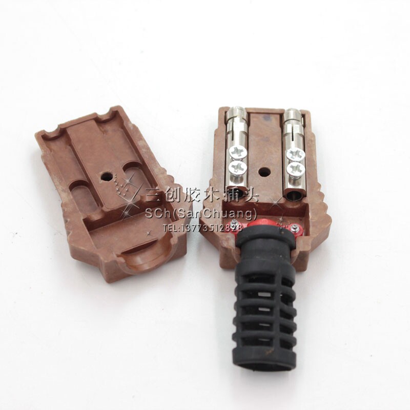 Factory direct sale Three-wound rubber wood plug 10A female plug with clip wire nail (square copper) glued wood plug