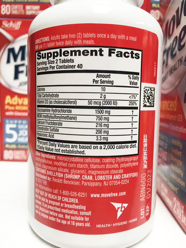 Glucosamine hydrochloride Chondroitin chondroitin Bouric acid Patent herbal extracts MSM (750mg Per Serving) Vitamin D