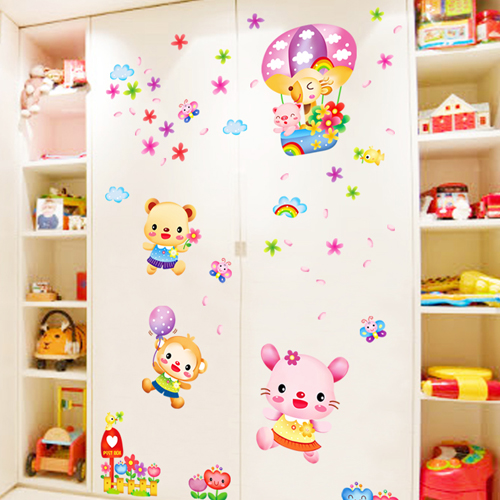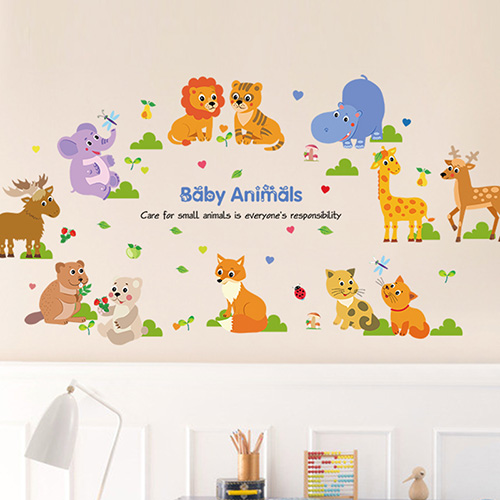Children's room Decoration Painted Kindergarten Classroom Wall Surface Arranged Wallpaper Self-Adhesive Sticker Cartoon Animal Wall Sticker