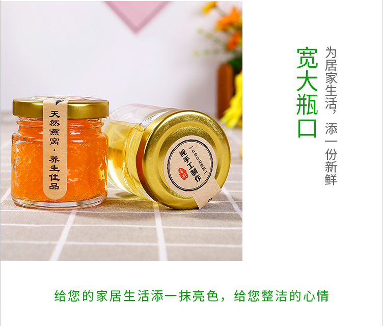 Lead-free bird's nest bottle Sub-bottle Small glass bottle 25ml Hi honey bottle 50ml jam honey bottle Sealed jar