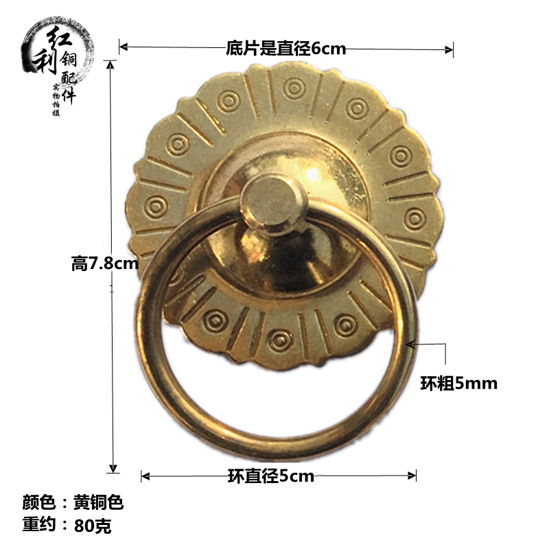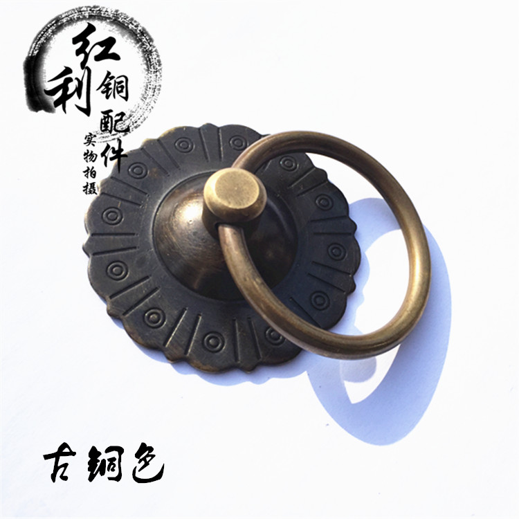Thickened Chinese antique pure copper pull ring drawer Chinese medicine cabinet ancient furniture? With door ring simple handle small handle
