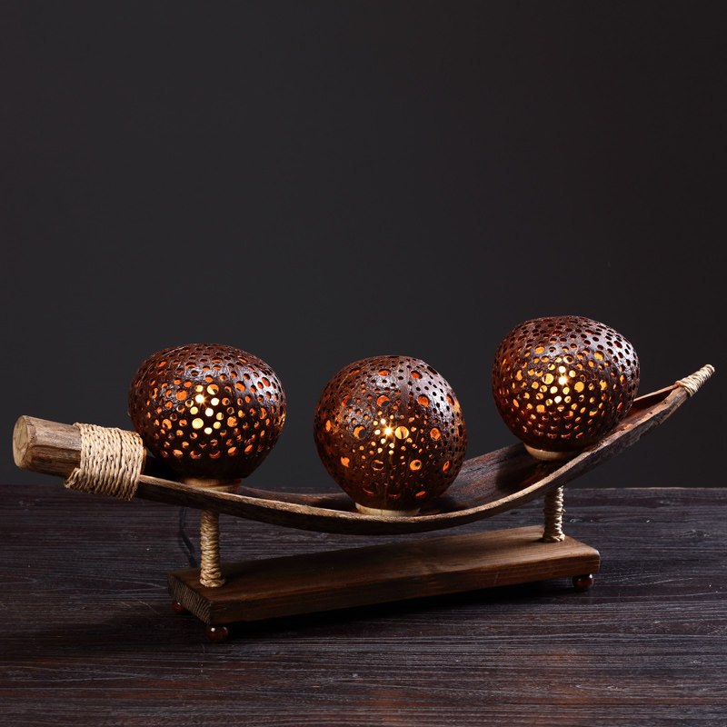 Quanquan Southeast Asia Imported Thai Pure Handmade Original Eco Coconut Shell Decoration Table Light Living Room Bedside Decorations