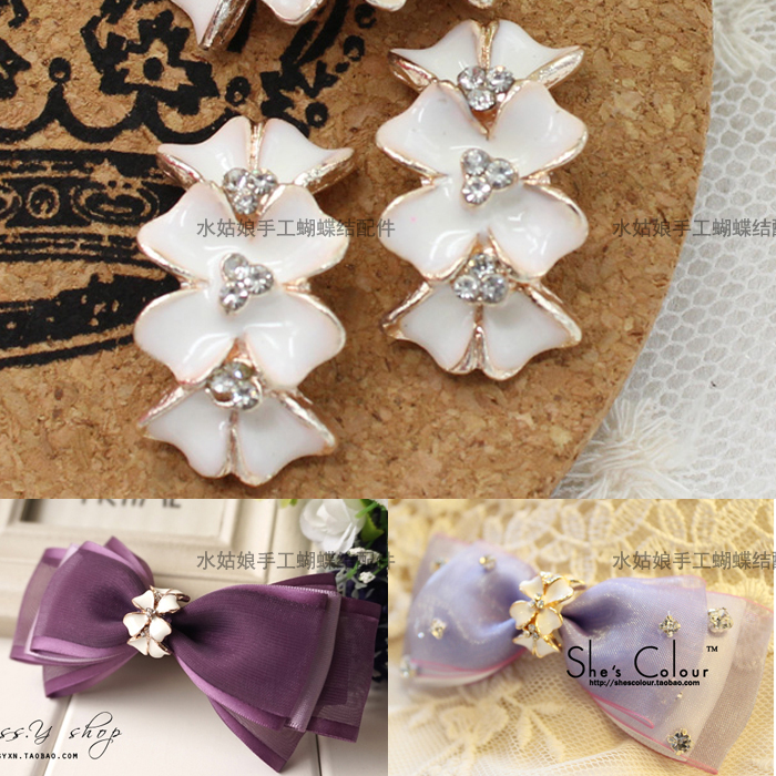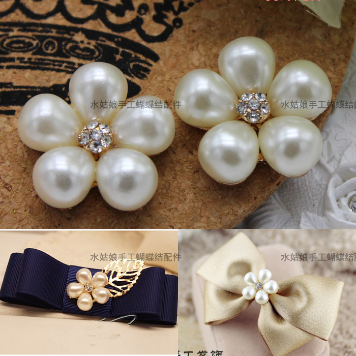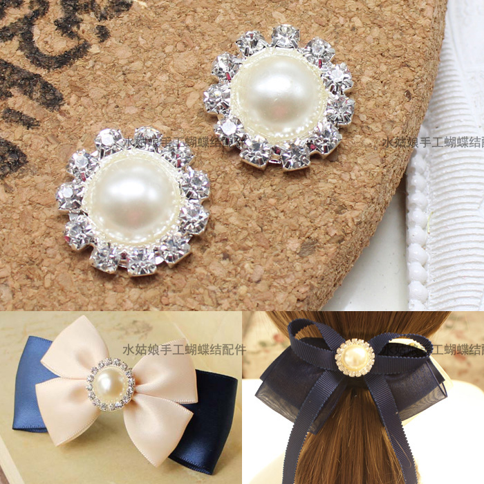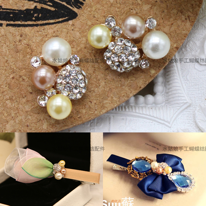 Pearl rhinestone flower plate drill hand-made DIY bow hairpin hair accessories headdress accessories small flower accessories material