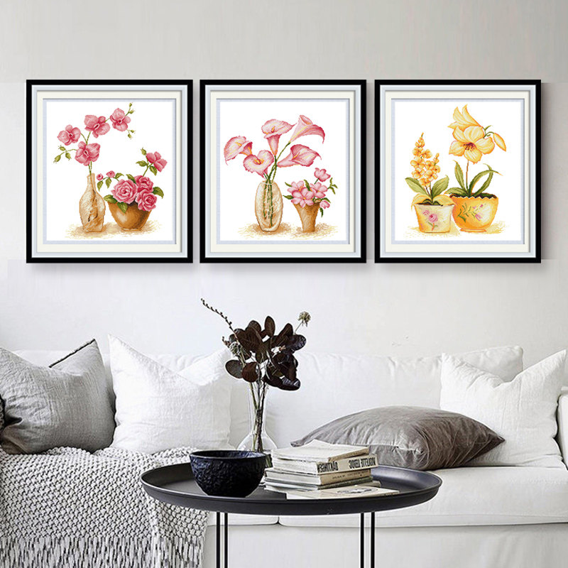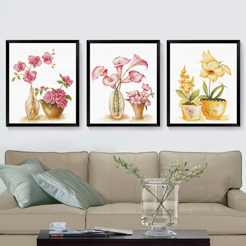 Cross stitch 2022 new line embroidered with simple embroidered living room yourself embroidered bedroom triptych flower small pieces new hands