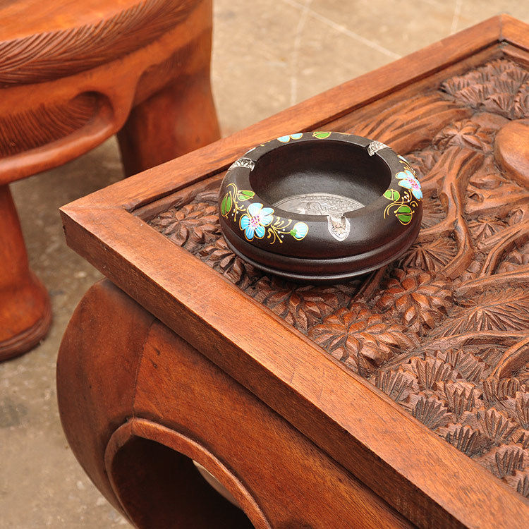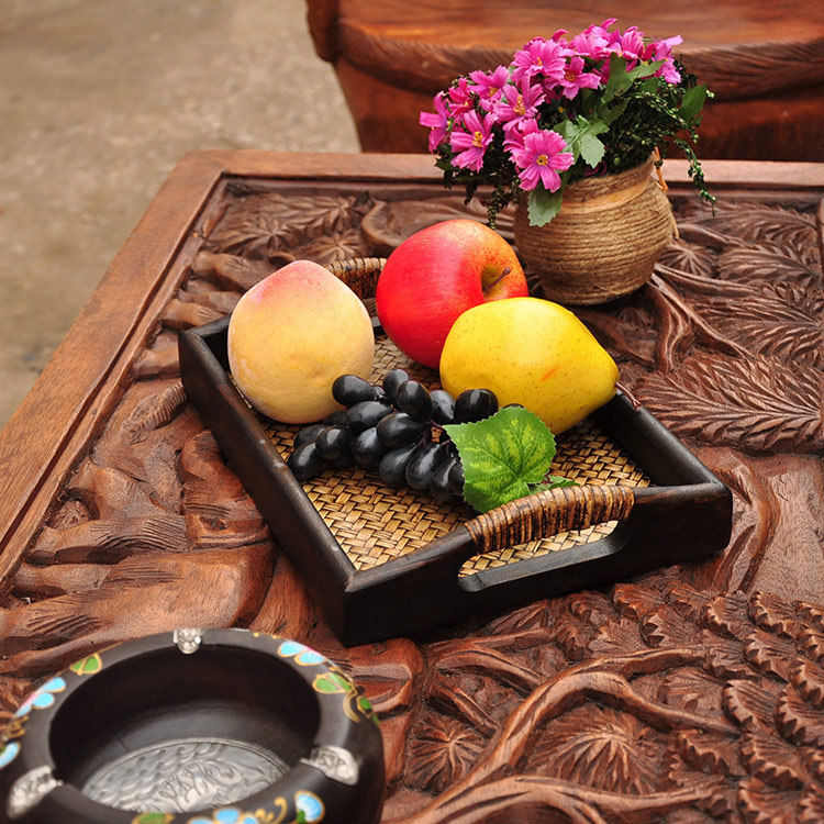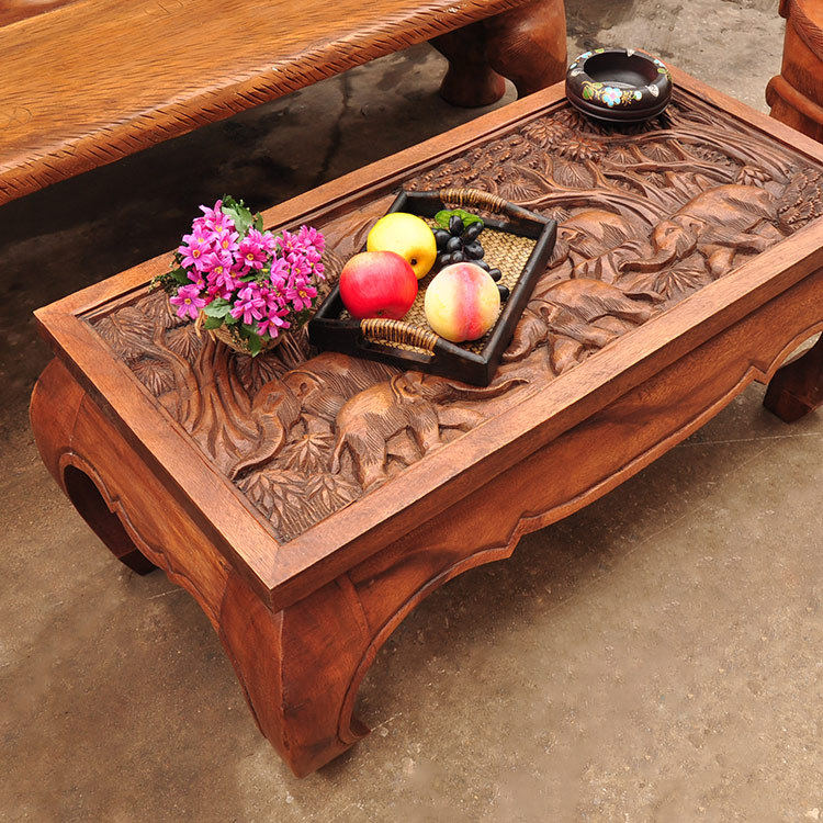 Thai Home Craft Gift Swing Accessories Solid Wood Teak Wood Carved tea table decorations Southeast Asian table Thai style tea table and chairs