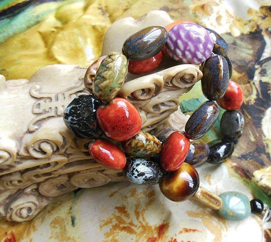 Glazed agate glazed multi-treasure beaded hand string