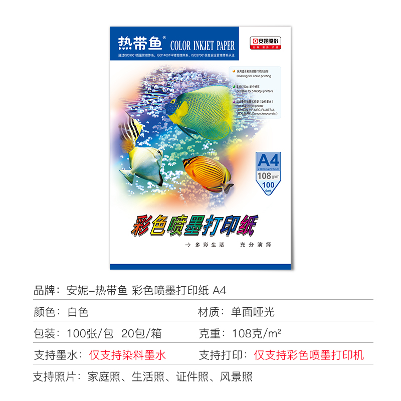 Color spray can paper Anne Tropical fish color spray can paper 108g a4 single-sided matte 108g inkjet copy paper A4