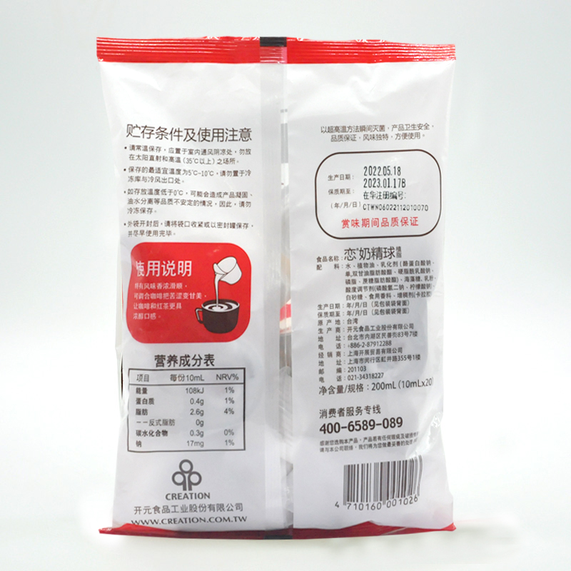 Taiwan Love Brand Milk Ball Coffee Companion Cream Ball Love Creamer Ball 10ml * 20 Large Milk Sugar Wrapped Milk Packet