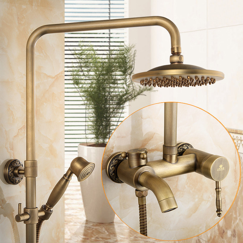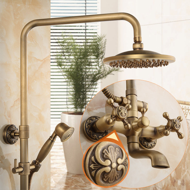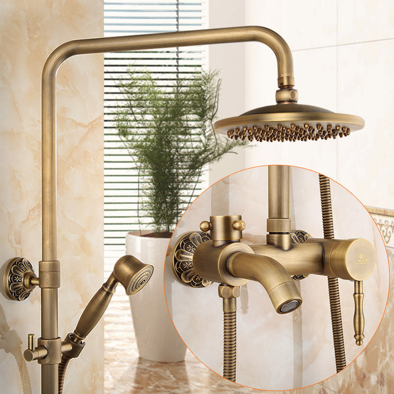 Queen's family all copper antique flower sprinkler European style retro lift shower large nozzle bathroom faucet set