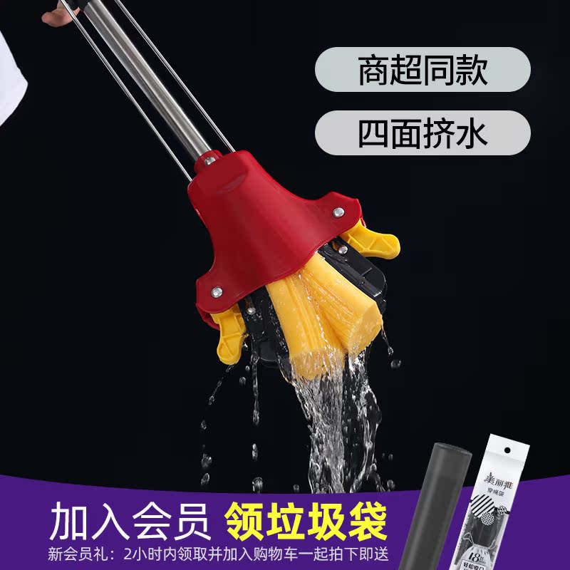 Beautiful and elegant sponge absorbent mop Sponge glue cotton mop free hand wash household folding one drag dry and wet dual-use net
