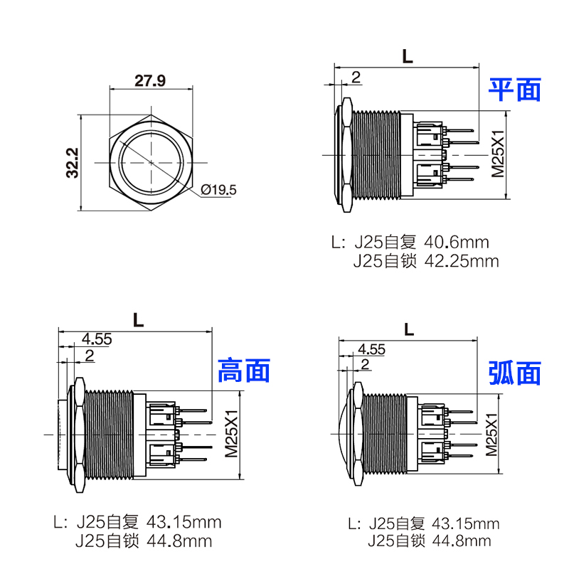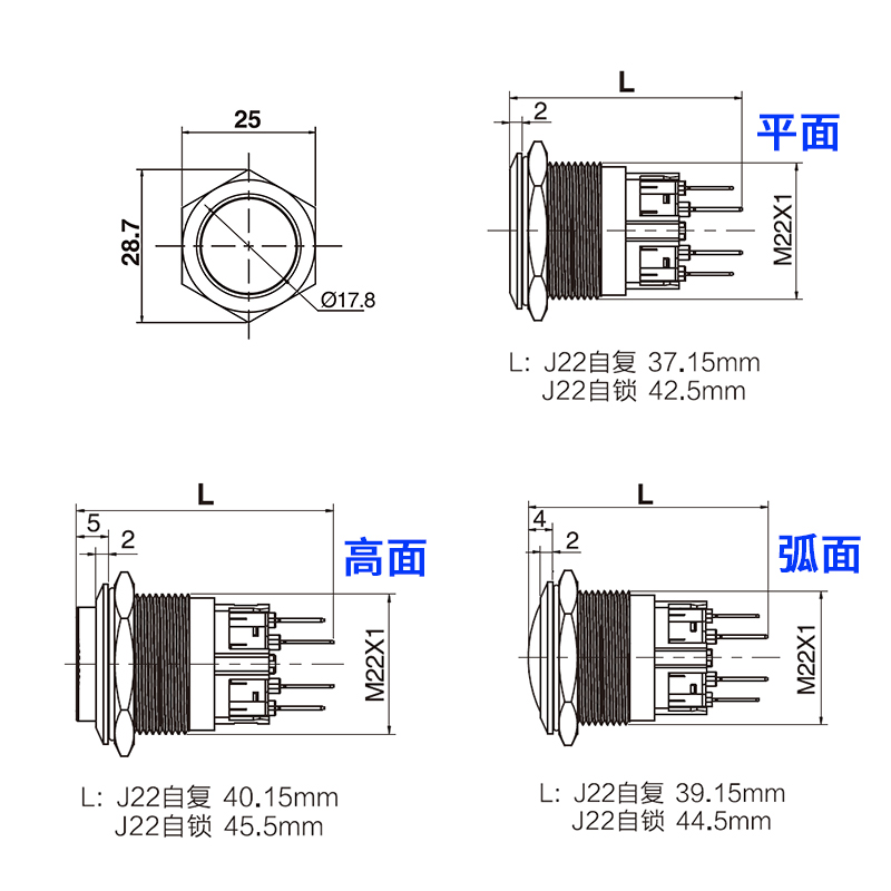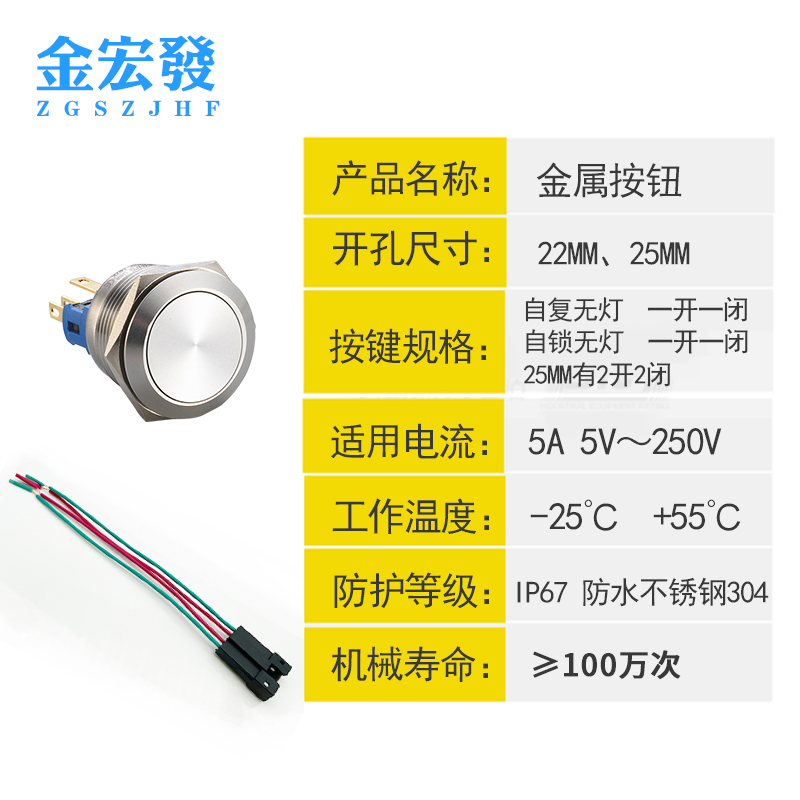 22MM stainless steel metal button switch J22 - 211 flat head self - rest elevator doorbell switch