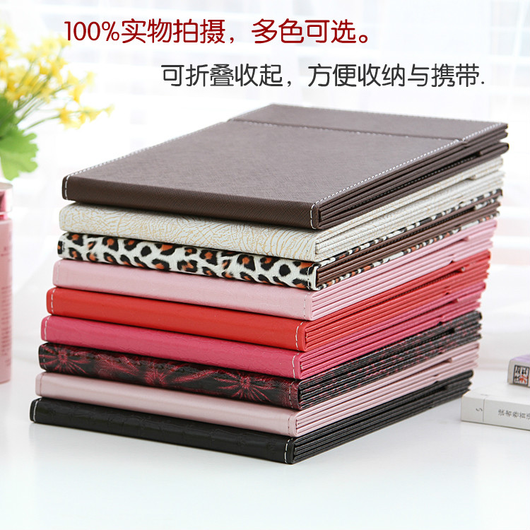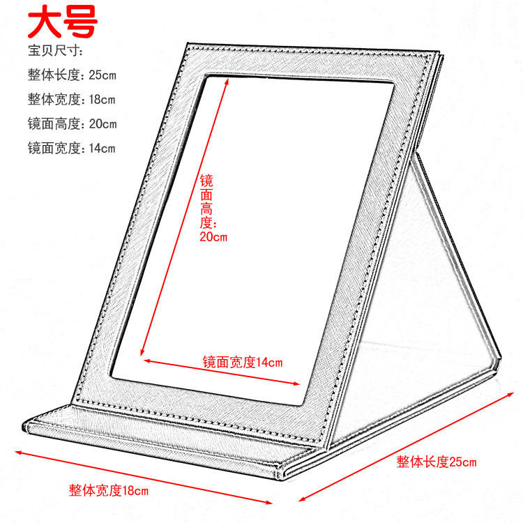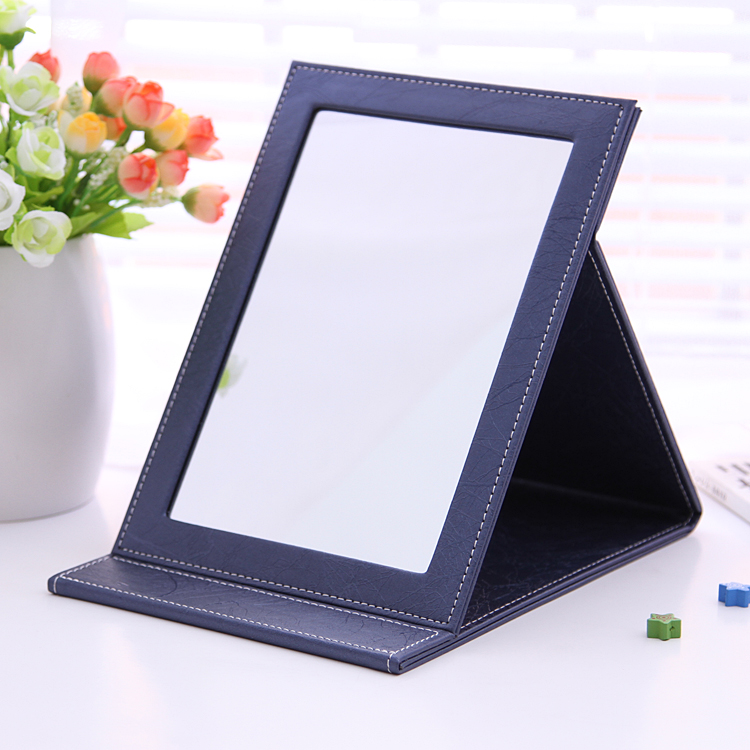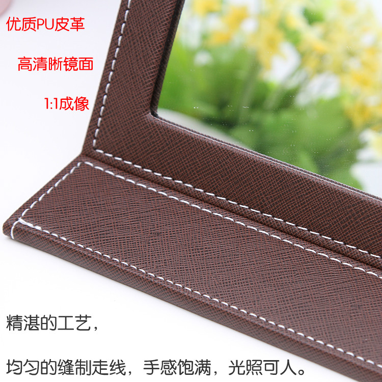 High-grade leather makeup mirror, large folding PU desktop mirror, high-quality portable table mirror, beauty and hairdressing dressing mirror