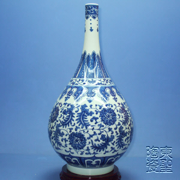 Imitation Qingganlong twisted branch pattern blue and white bile bottle hand-painted blue and white porcelain vase Jingdezhen ceramic imitation retro porcelain ornaments
