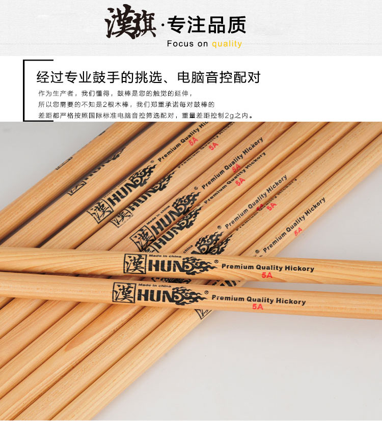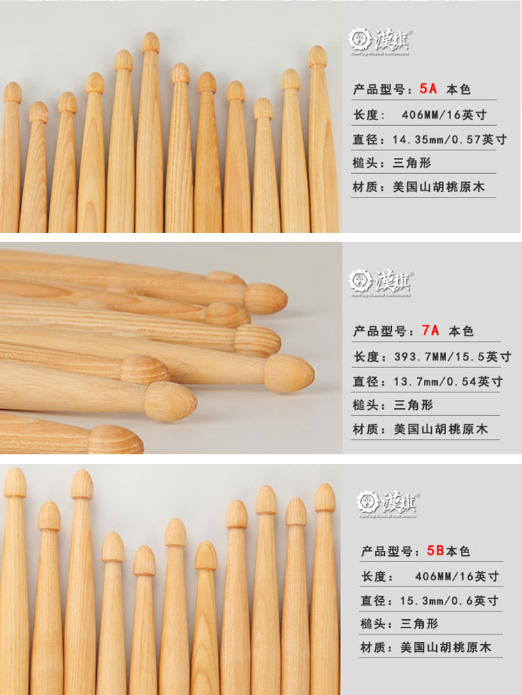 HUN Han brand drum stick 5A 7A 5B imported Hickory wood drum set Jazz drum stick drum hammer