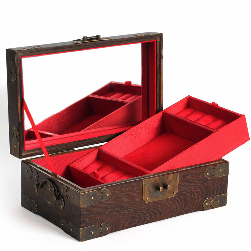 Chicken Wings Wood Double Red Wood First Decorated Case With Lock Wood Solid Wood Antique Jewelry Handdecorated Containing Box Baise Box