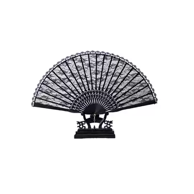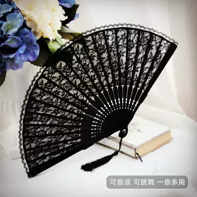 Ladies with cheongsam dance small folding fan Black lace Ancient style Classical retro Hanfu folding Chinese fan