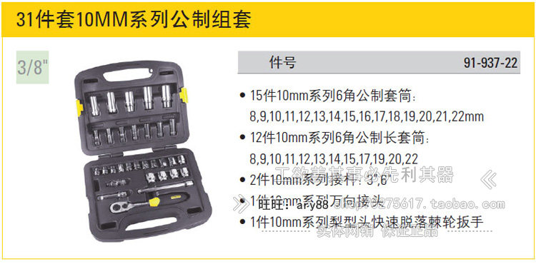 STANLEY 31 piece set 10MM series metric set 91-937-22 socket wrench tool