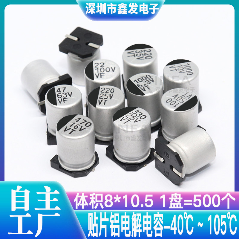 Patch aluminium electrolytic capacitor 25V330UF volume 8 * 10 5 330UF 25V SMD electrolytic capacitor