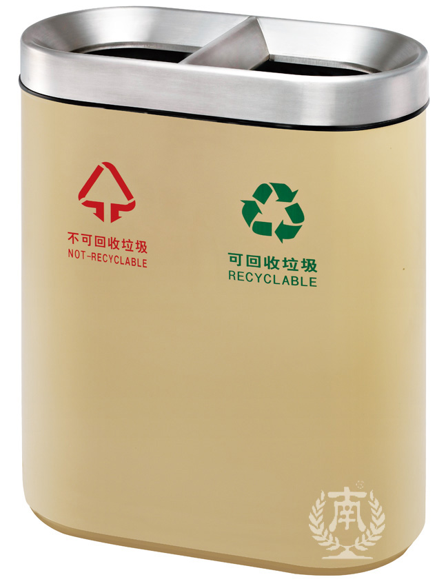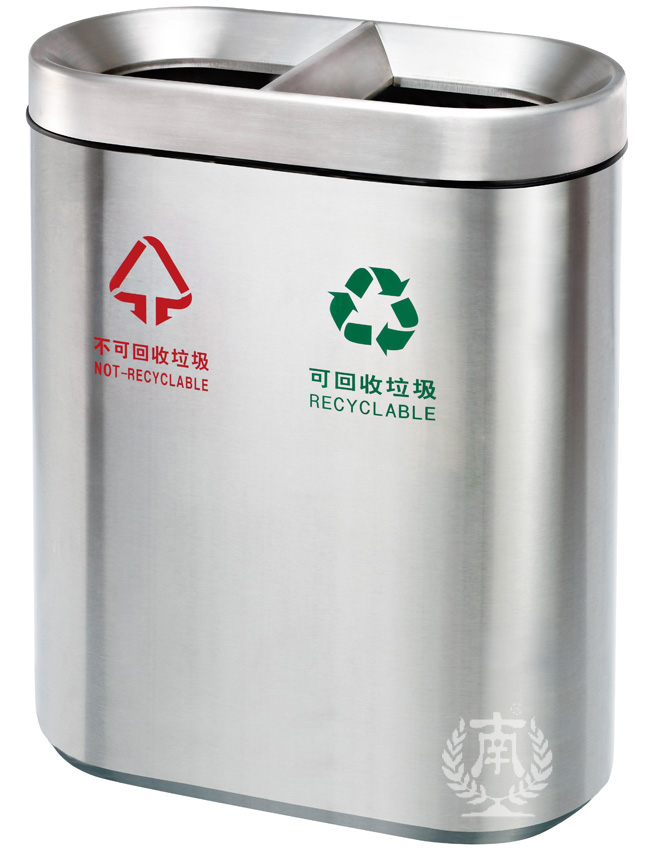 High-end Subway Sorting Trash Can Airport Stainless Steel Environmental Protection Dustbin Mall double-cylinder fruit leather case Peel Barrel