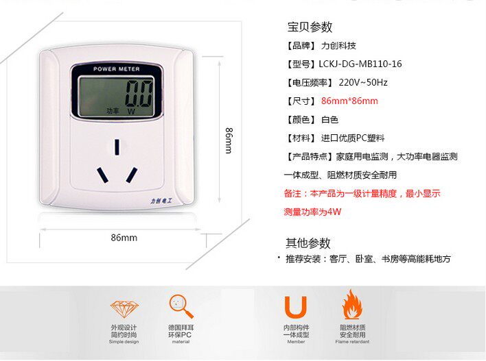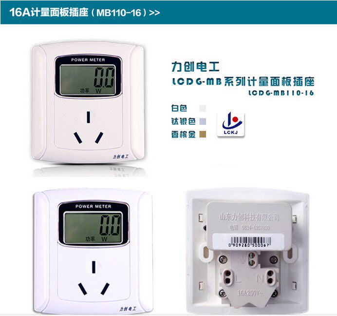 Li Chan air conditioning high power meter measuring socket 16A electricity meter power measuring meter power detection panel