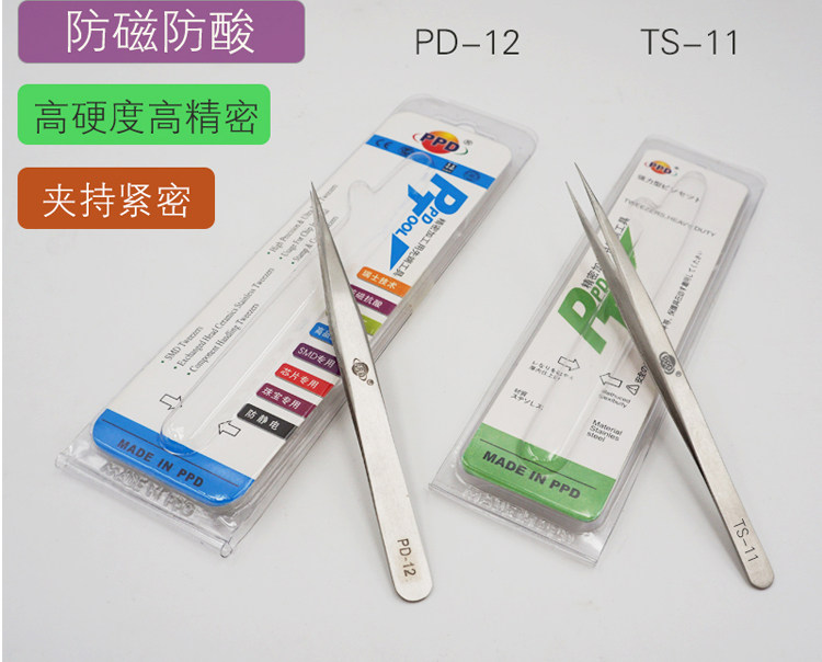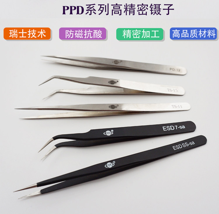 PPD Antistatic Stainless Steel Elongated Curved Nozzle Precision Tweezers Bird's Nest Bristle Pick Acne Clip Repair Tool