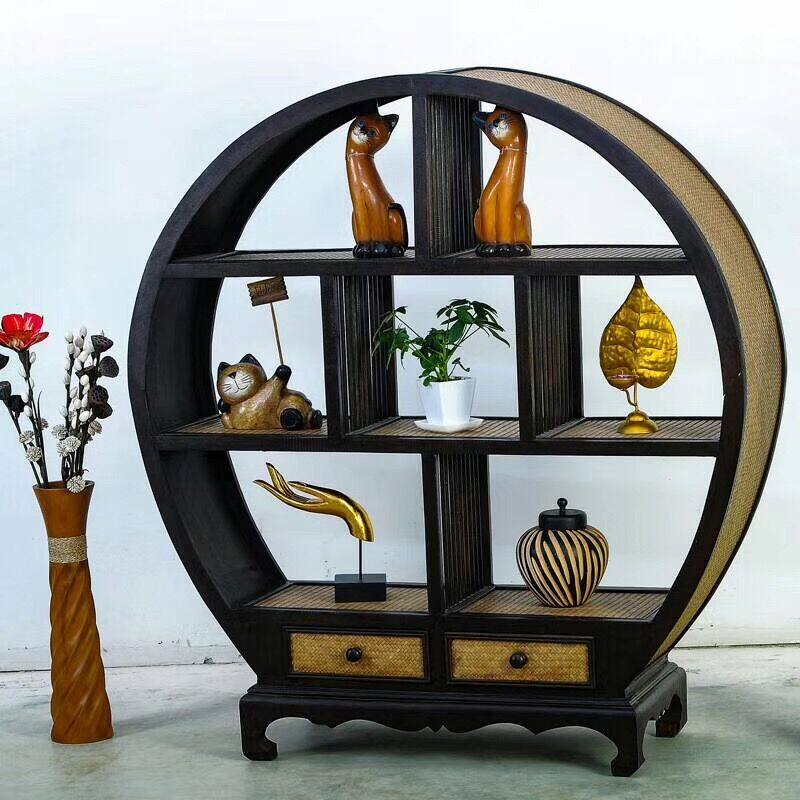 Southeast Asian style decorative cabinet porch cabinet Thai bookcase wine rack decoration round bamboo cabinet display cabinet shoe cabinet