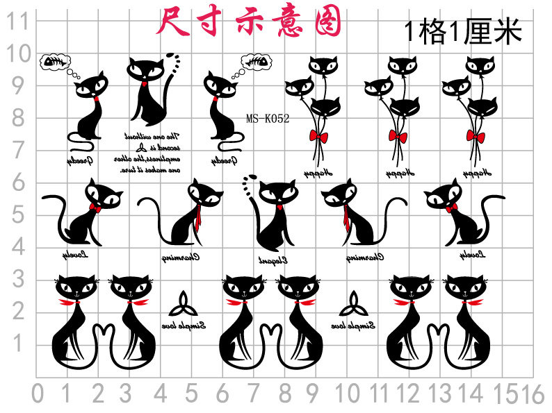 Small Essence New Sexy Personality Couple Mini English Flower Cat Cartoon Kitty Cat Tattoo Sticker waterproof lasting K052