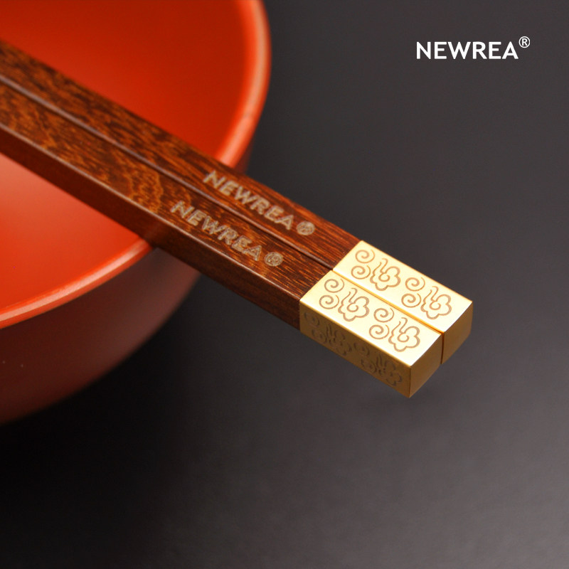 NEWREASierra fog gold auspicious cloud rosewood chopsticks Swiss famous watch electroplating process household tableware set