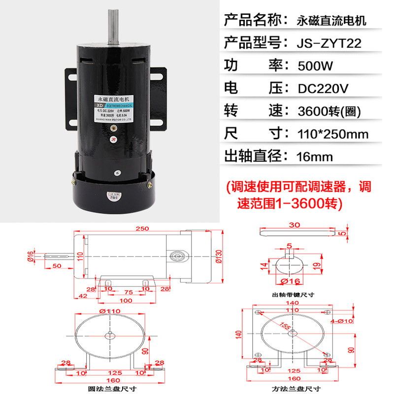 220V permanent magnet DC motor speed regulating motor 3600 rpm high power 500W high speed motor forward and reverse motor