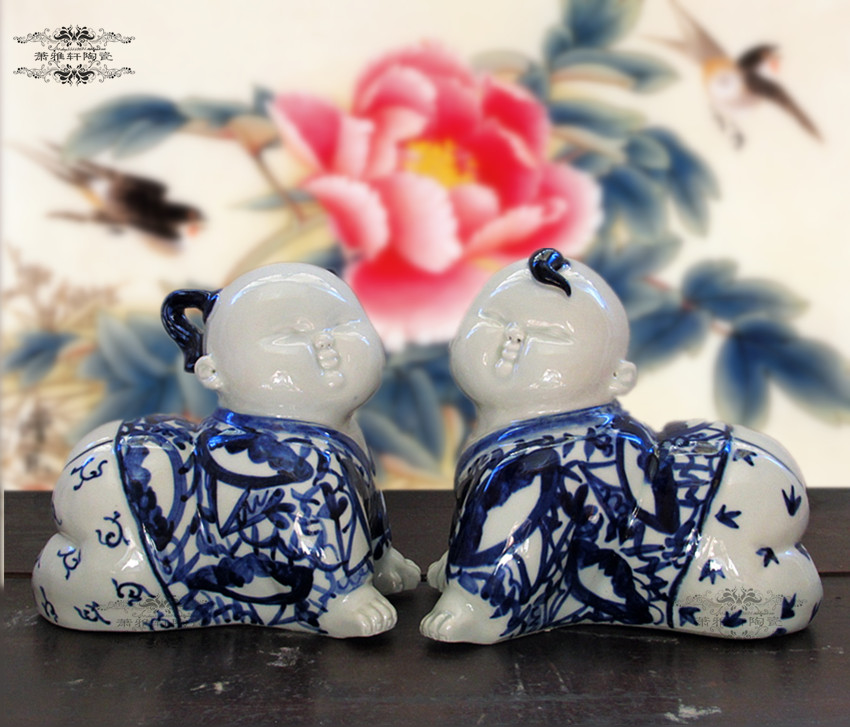 Hand-made porcelain Jingdezhen blue and white sculpture ceramic dolls a pair of new Chinese style home accessories decoration wedding gift