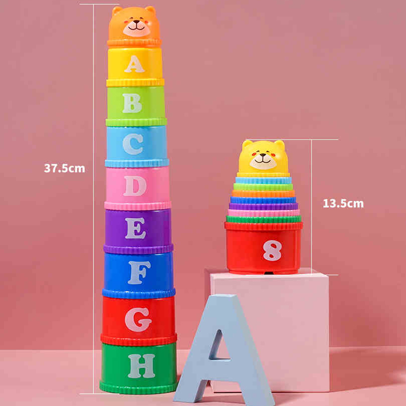 1-3-4-5 Year Old Teaching Aids Children's Puzzle Toy Fun Small Bear Stack Cup Fun Cover Cup Laminated laminated Leaf laminate