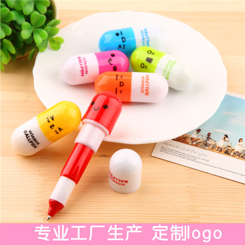 Customized capsule pen advertising ballpoint pen custom-made retractable pill pen printing logo wholesale student prizes children's gifts