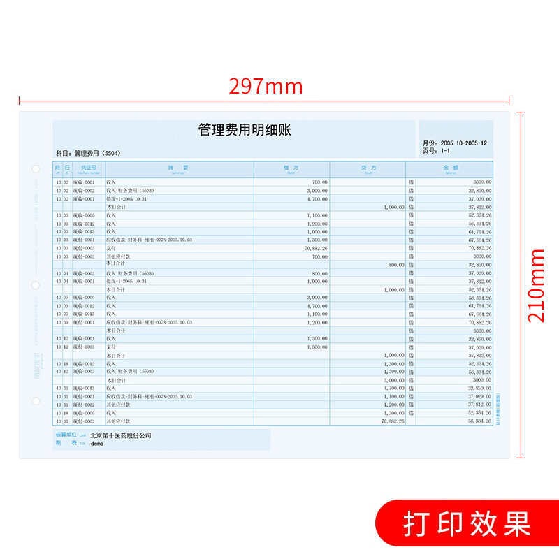 User friend form ledger paper printing paper Laser ledger printing paper 297*210mm User friend A4 general ledger detailed account KZJ101 User friend software for T3