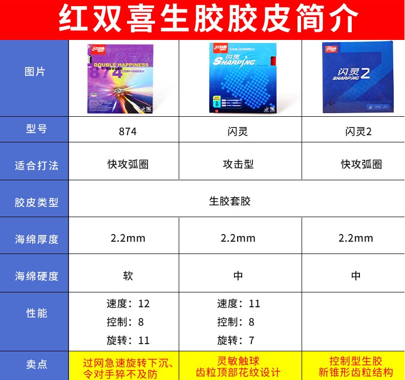 DHS Red Double Happiness Sharping Shining 874 raw rubber sleeve rubber table tennis rubber racket particle rubber