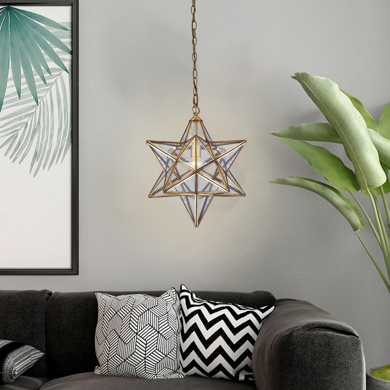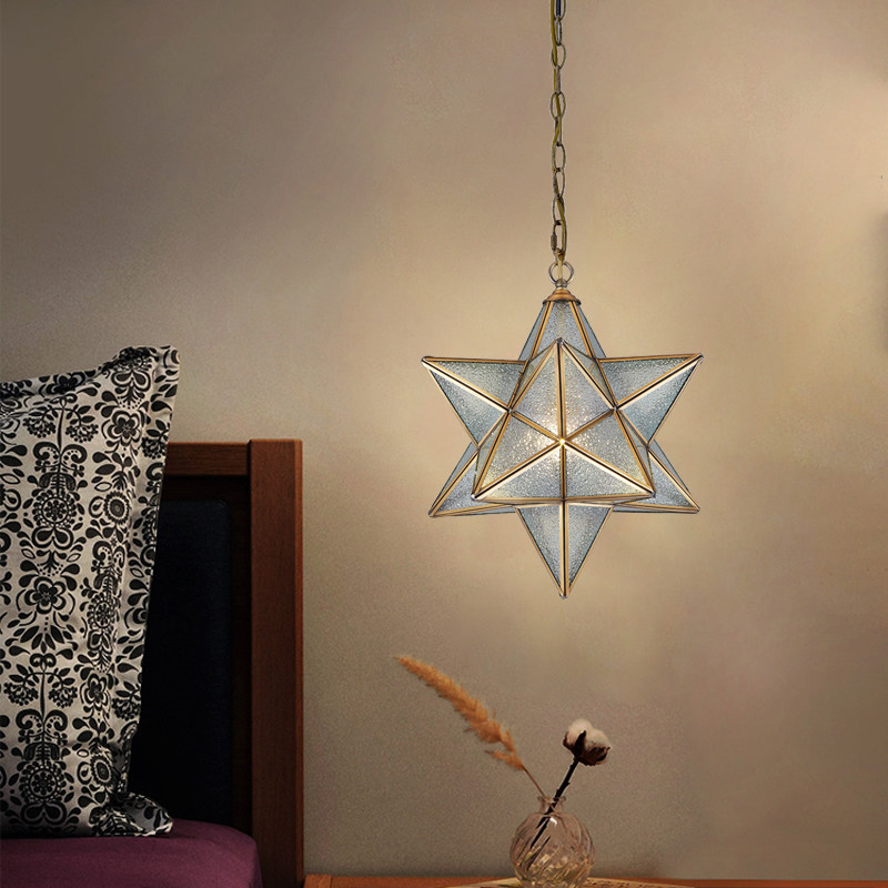 All copper star chandelier living room dining room aisle bar balcony light European personality creative bedroom children's room lighting