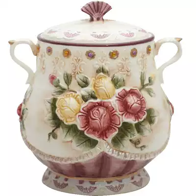 Large candy jar tea pot tea jar relief jar biscuit jar tea jar relief rose home dried fruit jar