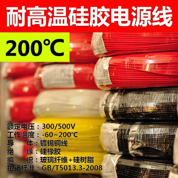 High temperature silicone power cord Heat-resistant silicone wire High temperature wire Copper flame retardant silicone rubber glass fiber braided wire