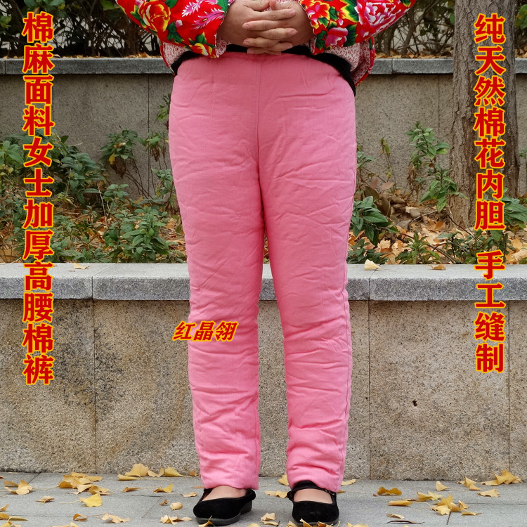 Female-style adult handmade pure cotton liner thickened high waist cotton pants cotton linen winter clothing home warm pants set to do