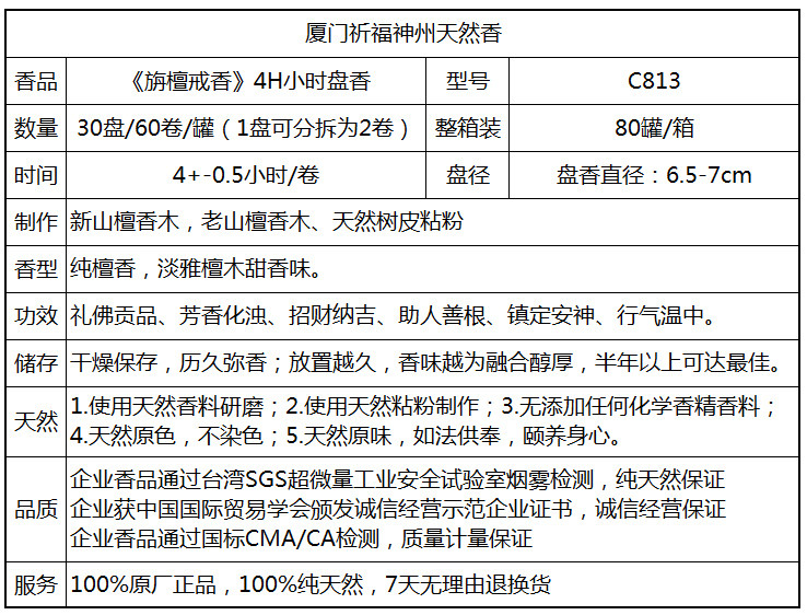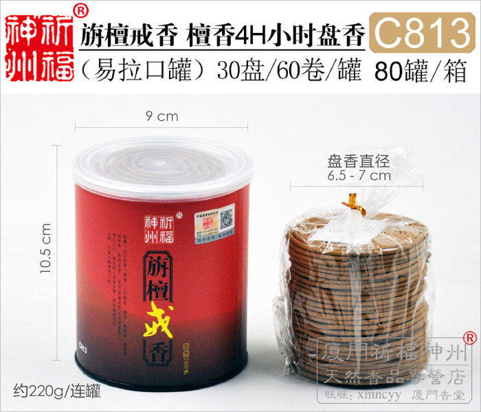 Original Xiamen blessing Shenzhou "Zhan Sandalwood ring incense" Sandalwood 4-hour ring incense Buddha incense natural incense C813