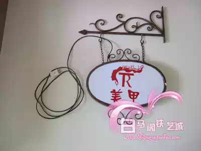 Wrought iron billboard light box Shop sign bracket oval billboard LED light plug-in type can be with words