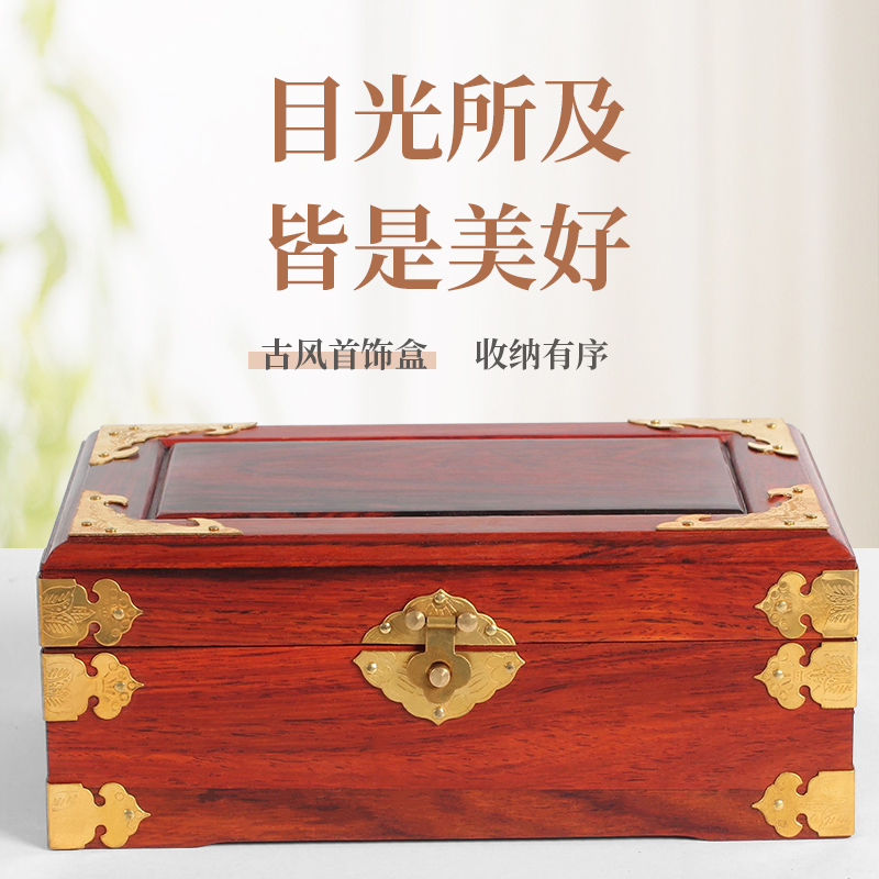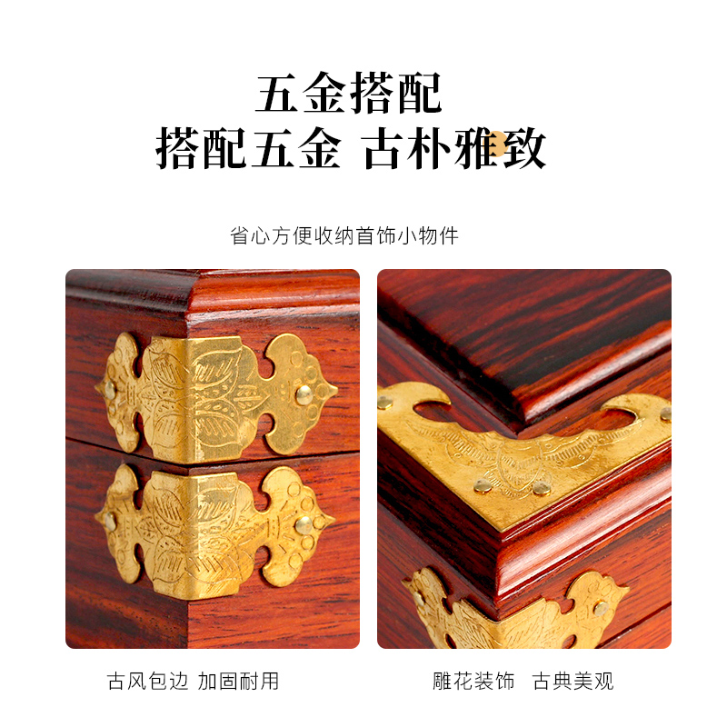 Chinese mahogany carved red rosewood decorative jewelry box solid wood retro jewelry hand jewelry storage box wooden box