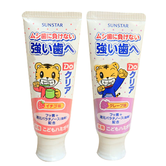 Japan sunstar Qiaohu children's toothpaste anti-swallowing and anti-moth to yellow spot strawberry flavor grape taste