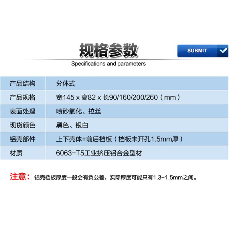 145*82 Custom Aluminum Alloy Power Controller Rail Transit Test Aluminum Shell Aluminum Extrusion Material Circuit Board Aluminum Shell