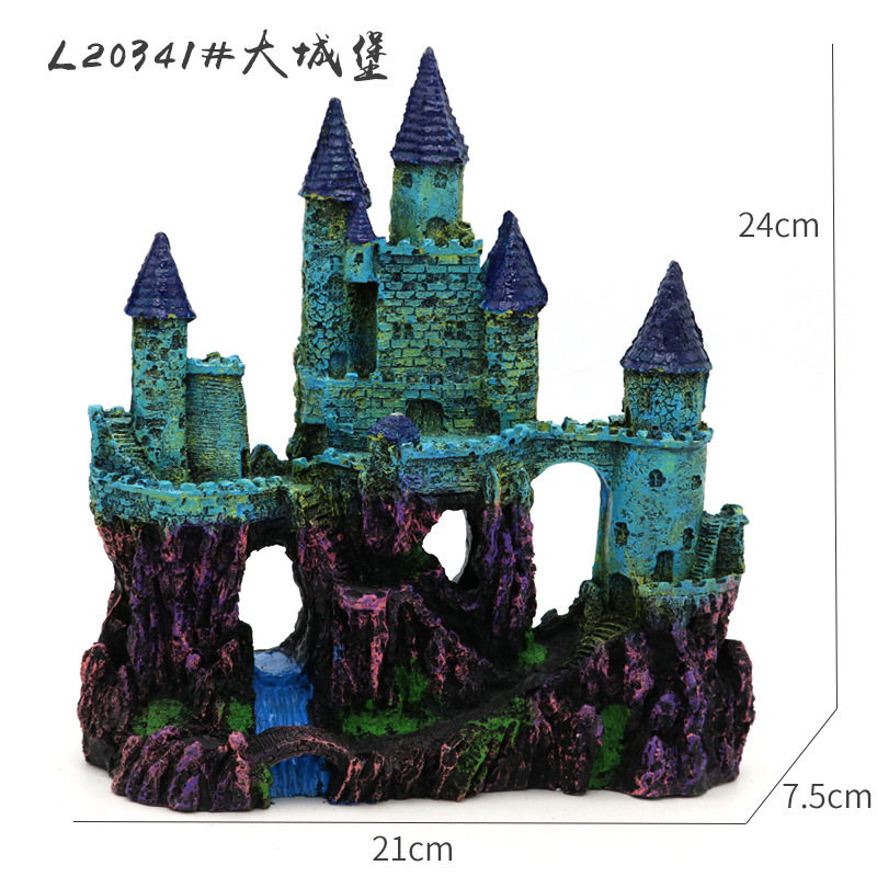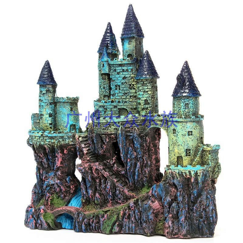 Simulation of retro castle scenic aquarium to avoid decorative resin houses manual European waterfall fish tank environmental protection