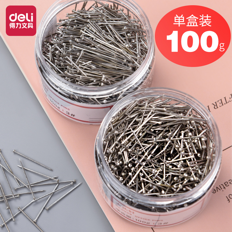 Deli pin Fixed pin small metal clothing stand-up nail office with hand needle paper clip long tail clip set marker needle box large tool anti-rust
