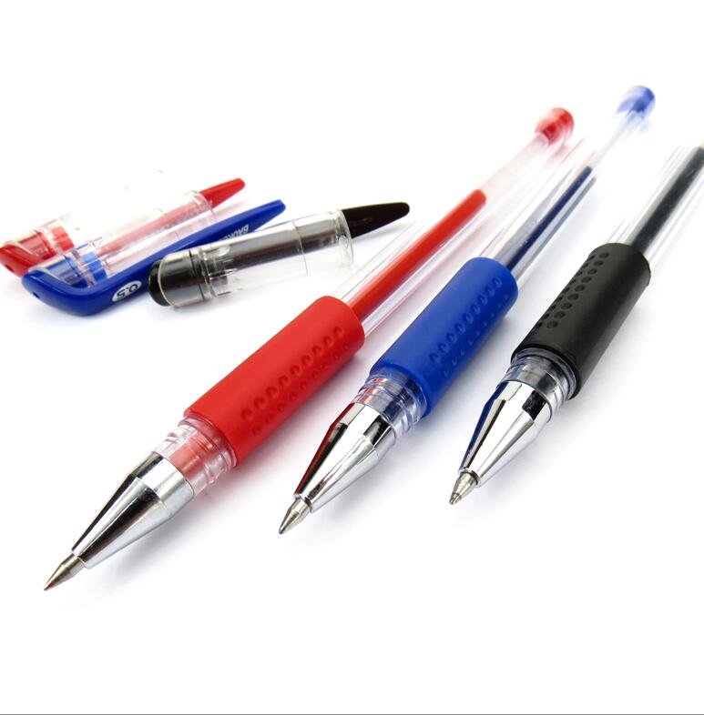 1 pen, 10 refills (writing black), 12 refills, 20 refills (writing black), black pen (1 box of 12), red pen (1 box of 12), blue pen (1 box of 12)