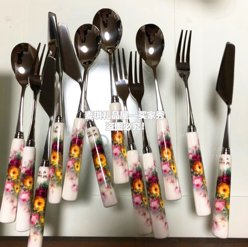 South Korea Imported Kitchen Cutlery CUTLERY TPMATE ITALIAN ROSE CERAMIC STAINLESS STEEL COFFEE SPOON FRUIT FORK 6P